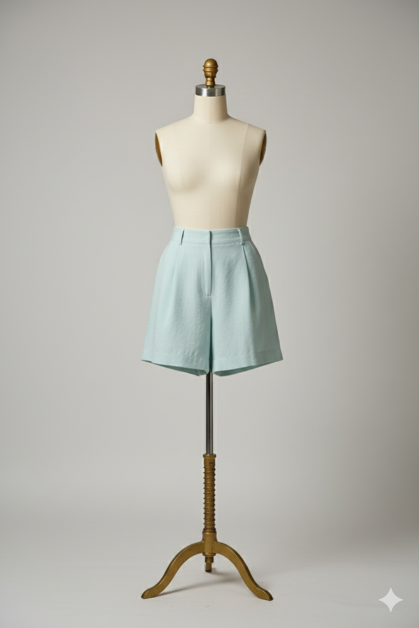 Com uma modelagem de cintura alta e caimento estruturado, esta peça é indispensável para compor looks de verão que exigem um toque extra de sofisticação e frescor.
