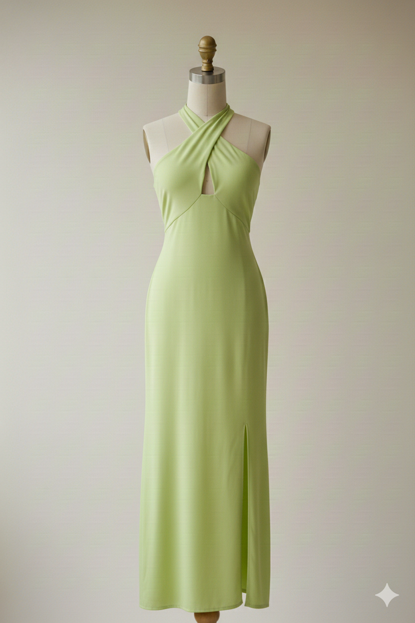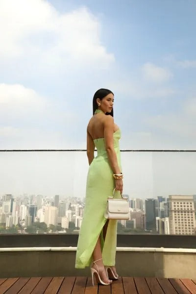 Design Minimalista: Sem excessos, a peça foca na fluidez da saia longa e no acabamento de alta costura, tornando-se o "quadro em branco" perfeito para acessórios marcantes ou para um visual clean absoluto.