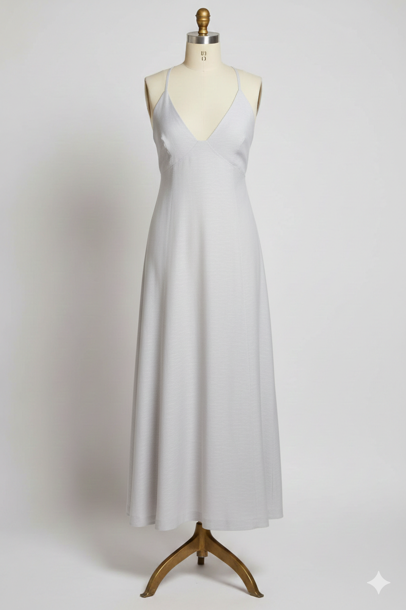 Com um design que valoriza a leveza do movimento, esta peça em tom off-white suave é perfeita para ocasiões que pedem um visual romântico e sofisticado, desde eventos ao ar livre até jantares especiais.